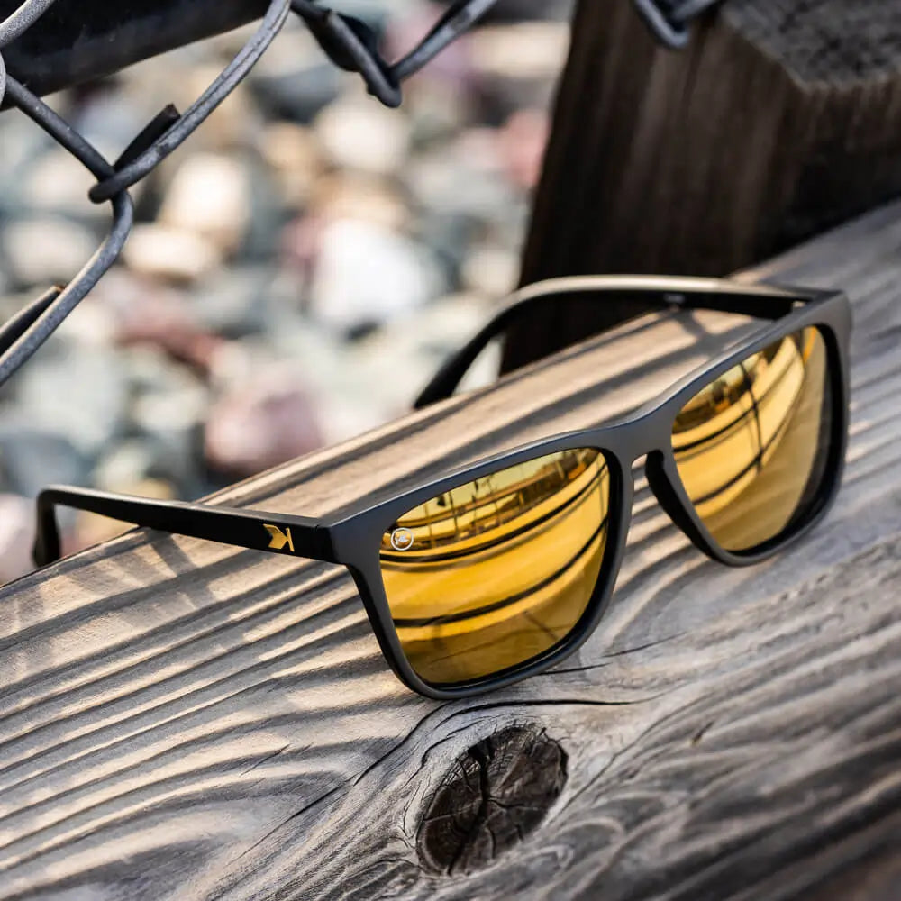 Elevate your look with our Black Gold Fast Lanes. Rubberized matte black frames provide a sleek, sophisticated base, while polarized gold mirror lenses protect your eyes and add a bold, luminous touch. Designed for style and performance, these sunglasses offer full UV400 protection and FDA-approved impact-resistant lenses, keeping you safe and shining bright wherever you go.