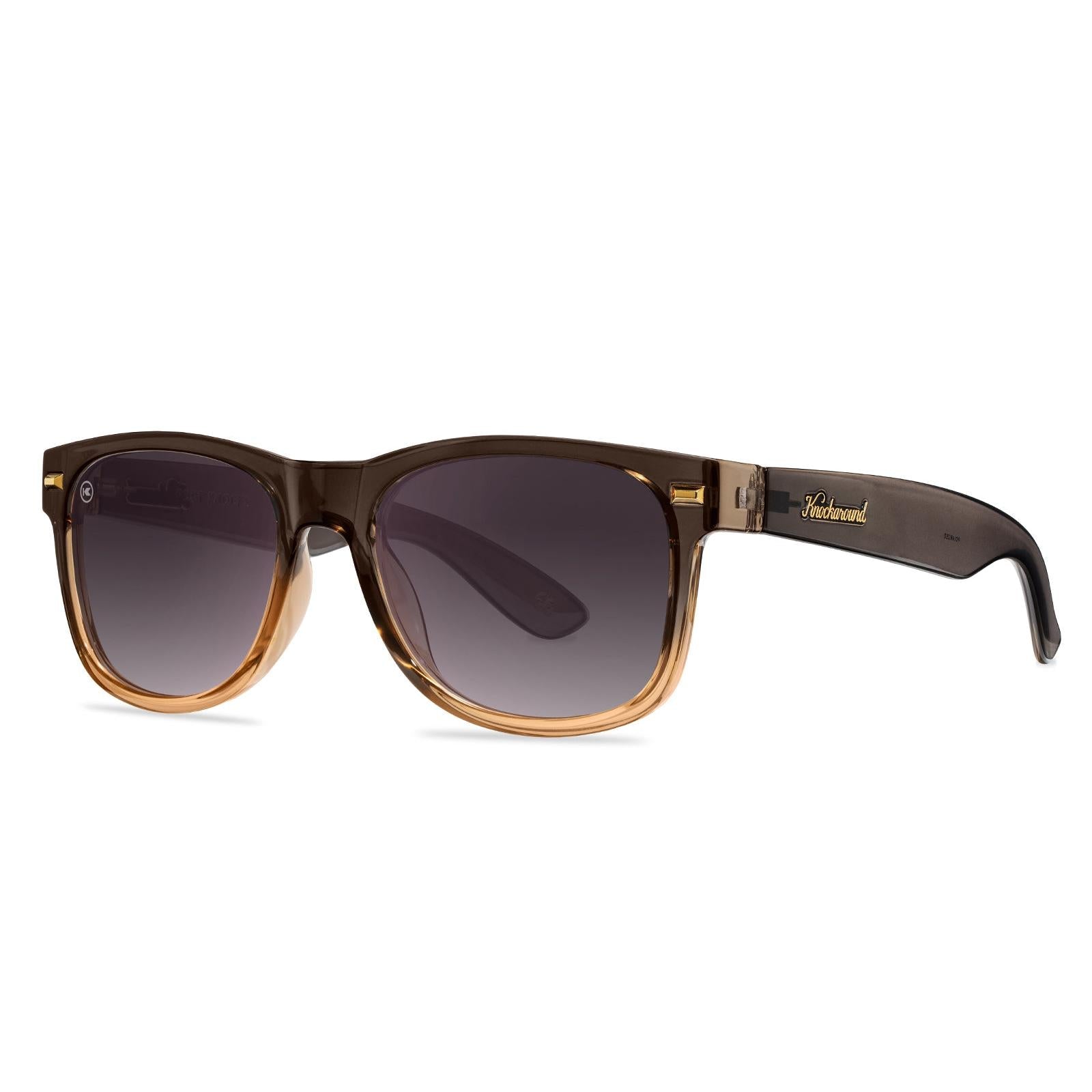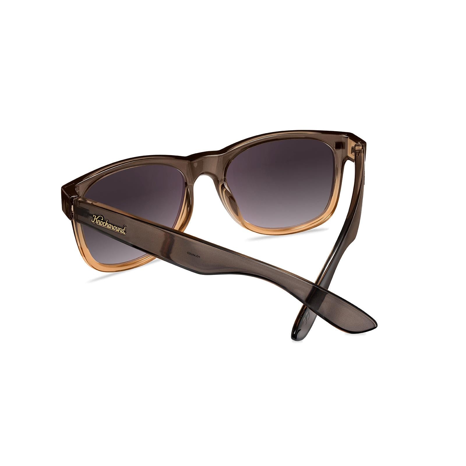 Stand out with the Cortado Fort Knocks, where playful color transitions meet contemporary styling. The clear amber fronts fade into a muted brown, mirrored on the arms, while gold hardware adds a touch of sophistication. Polarized smoky gradient lenses with UV400 protection keep your eyes safe, and impact-resistant construction ensures lasting durability.