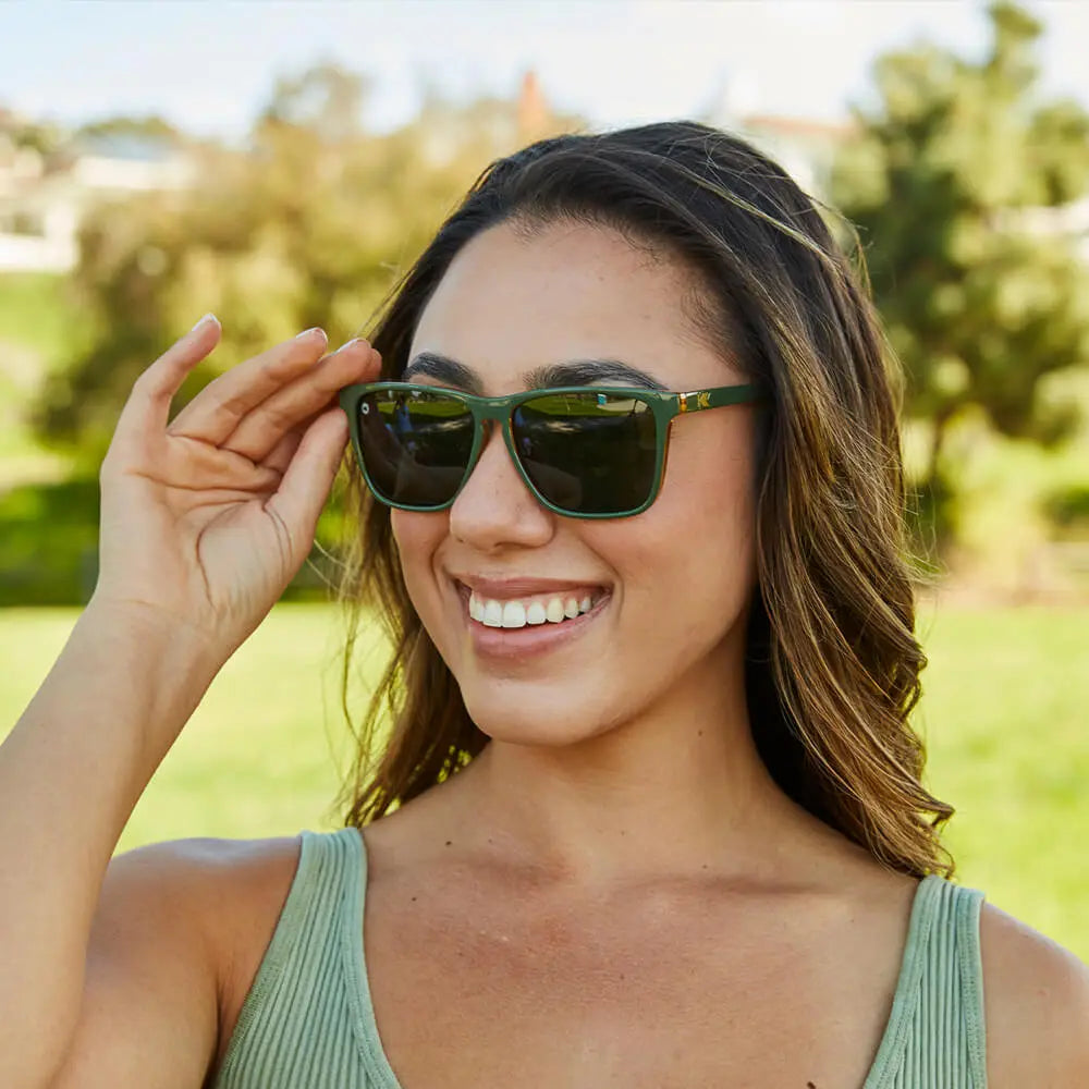 Answer the call of the wild with these Knockaround Fast Lanes in army green. The army green exterior paired with an amber interior evokes rugged landscapes, while polarized aviator green lenses provide sharp clarity and full UV400 protection. Durable, stylish, and ready for any adventure, these shades are built to perform wherever the journey takes you.