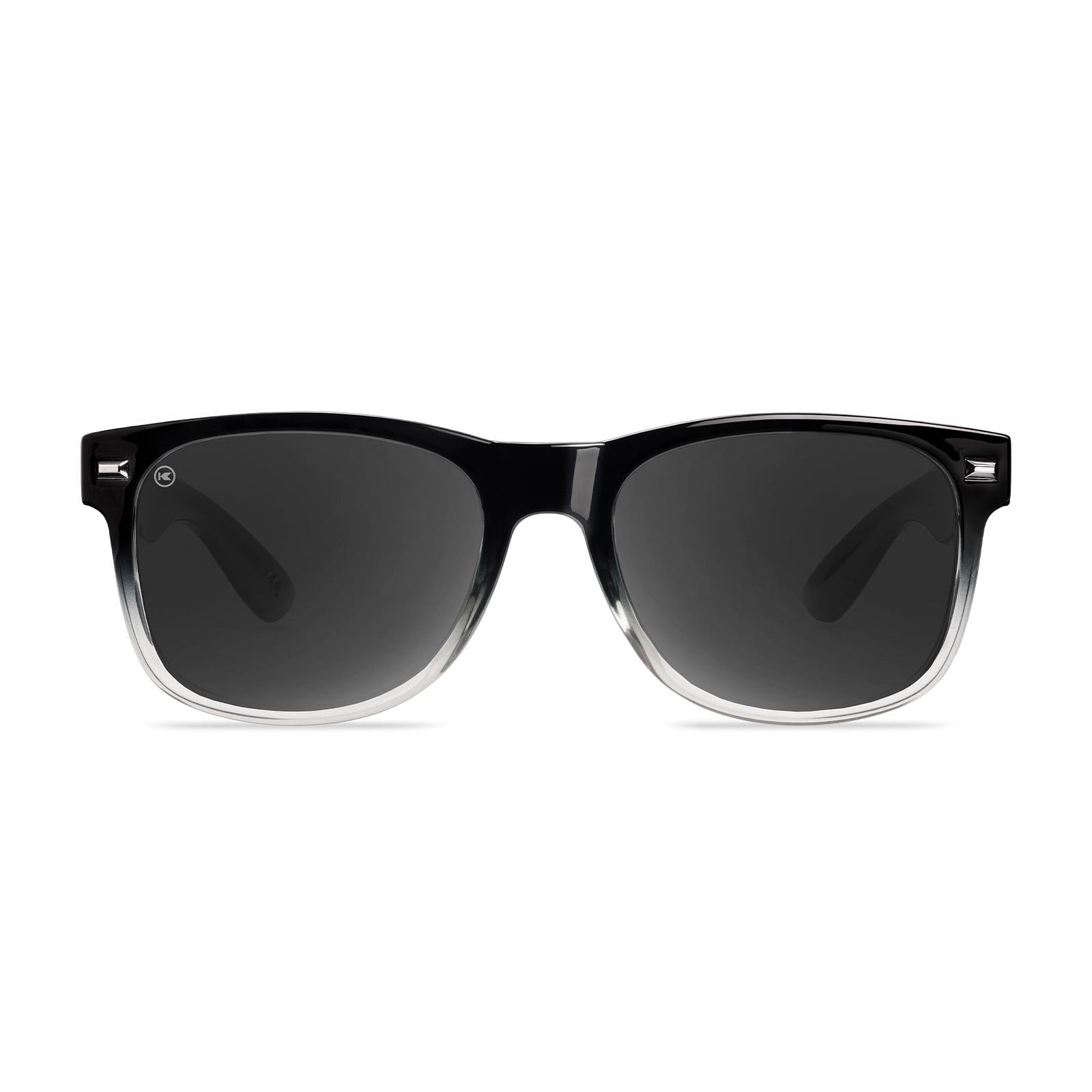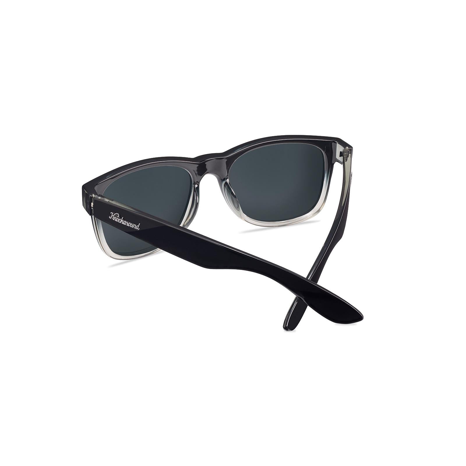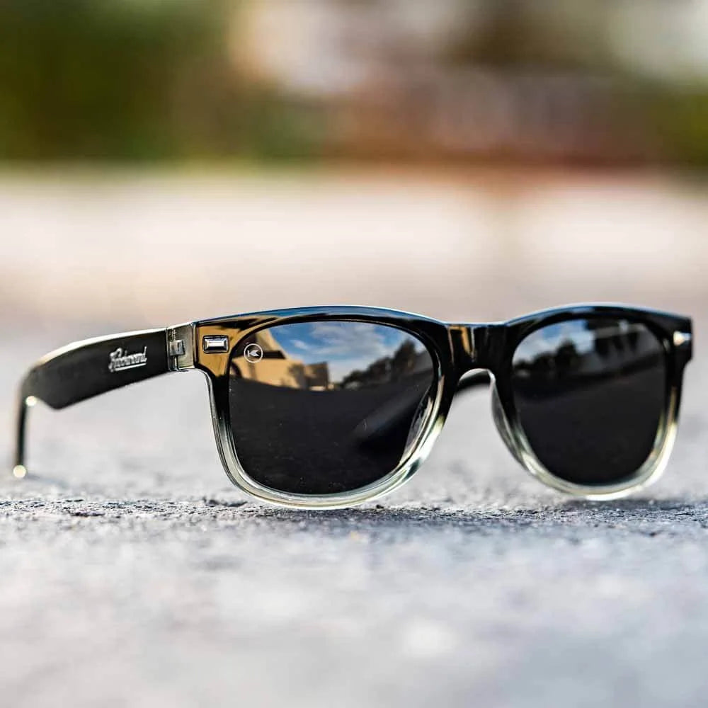 A sophisticated blend of retro and modern style, the Obsidian Fort Knocks Sunglasses deliver both fashion and function. The black-to-clear gradient front frames reflect smooth finesse, while black arms with inner transparent accents add a playful, fashion-forward touch. Polarized smoke lenses offer UV400 protection and impact resistance, keeping your eyes safe during any adventure, while dark chrome accents and scripted arms elevate your style.